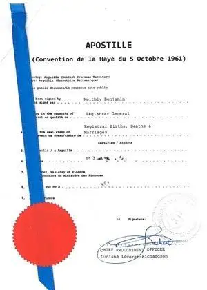 Anguilla documents can be legalized for use abroad with an Apostille Stamp from the Ministry of Finance when destined for other signatory countries without additional certification by the destination country.